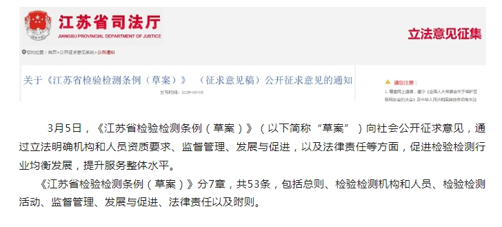3月5日,《江蘇省檢驗檢測條例(草案)》正式向社會公開征求意見。這部共7章53條的法規(guī)草案,針對當(dāng)前檢驗檢測行業(yè)存在的低價競爭、資質(zhì)掛靠、數(shù)據(jù)造假等亂象,從機(jī)構(gòu)資質(zhì)、監(jiān)督管理、法律責(zé)任等多個維度作出系統(tǒng)規(guī)范,為行業(yè)健康發(fā)展提供法治保障。一、明確監(jiān)管范圍 實現(xiàn)全領(lǐng)域覆蓋草案創(chuàng)新性地將檢驗檢測機(jī)構(gòu)分為兩類實施監(jiān)管:行政許可類:包括建設(shè)工程質(zhì)量、公路水運工程、農(nóng)產(chǎn)品質(zhì)量安全、雷電防護(hù)裝置等五大重點領(lǐng)域備案監(jiān)管類:涵蓋消防設(shè)施維護(hù)保養(yǎng)檢測等需日常監(jiān)督的機(jī)構(gòu)這種分類監(jiān)管模式既確保重點領(lǐng)域嚴(yán)格管控,又實現(xiàn)行業(yè)監(jiān)管無死角,為全國檢驗檢測行業(yè)立法提供了"江蘇樣本"。二、劍指行業(yè)頑疾 出臺硬核措施針對當(dāng)前突出的行業(yè)亂象,草案祭出組合拳:嚴(yán)禁低價競爭:首次以立法形式明確禁止不合理低價服務(wù),從源頭遏制"劣幣驅(qū)逐良幣"強(qiáng)化過程管控:要求原始記錄和報告存檔不少于6年,確保檢測活動可追溯壓實平臺責(zé)任:網(wǎng)絡(luò)交易平臺需審核機(jī)構(gòu)資質(zhì)并公示信息,構(gòu)建線上線下一體化監(jiān)管體系三、創(chuàng)新監(jiān)管機(jī)制 提升治理效能草案單設(shè)"監(jiān)督管理"專章,推出三大創(chuàng)新舉措:信用監(jiān)管:建立分級分類監(jiān)管制度,根據(jù)信用評價動態(tài)調(diào)整檢查頻次聯(lián)合懲戒:對出具虛假報告等嚴(yán)重違法行為,最高處以10萬元罰款并吊銷資質(zhì)閉環(huán)管理:形成"資質(zhì)許可-過程監(jiān)督-違法懲處"的全鏈條監(jiān)管閉環(huán)四、重典治亂 違法成本顯著提高法律責(zé)任章節(jié)凸顯"最嚴(yán)處罰"導(dǎo)向:對超范圍出具報告行為,設(shè)3-5萬元罰款并沒收違法所得對出具虛假報告的"零容忍":機(jī)構(gòu)罰5-10萬元,責(zé)任人罰1-5萬元建立"資格罰"制度,對情節(jié)嚴(yán)重者直接吊銷資質(zhì)許可證五、促進(jìn)行業(yè)高質(zhì)量發(fā)展在嚴(yán)格監(jiān)管的同時,草案專設(shè)"發(fā)展與促進(jìn)"章節(jié),通過:推動檢驗檢測技術(shù)研發(fā)和標(biāo)準(zhǔn)創(chuàng)新鼓勵機(jī)構(gòu)專業(yè)化、規(guī)?;l(fā)展支持檢驗檢測服務(wù)業(yè)集聚區(qū)建設(shè)這一立法將有效解決當(dāng)前檢驗檢測市場"小散亂"問題,推動行業(yè)從價格競爭轉(zhuǎn)向質(zhì)量競爭。《江蘇省檢驗檢測條例》的制定,標(biāo)志著檢驗檢測行業(yè)監(jiān)管進(jìn)入法治化新階段。通過建立"嚴(yán)準(zhǔn)入、強(qiáng)過程、重處罰"的監(jiān)管體系,必將有力遏制行業(yè)亂象,為經(jīng)濟(jì)社會高質(zhì)量發(fā)展提供更可靠的檢驗檢測服務(wù)保障。社會各界可積極參與征求意見,共同完善這一重要立法。