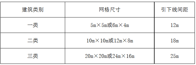 (1)對(duì)銀行辦公大樓根據(jù)《建筑物防雷設(shè)計(jì)規(guī)范》GB50057—2010對(duì)于建筑防雷的規(guī)定:在建筑物屋面上沿屋角、屋脊、檐角等易受雷擊部位敷設(shè)接閃帶,并在整個(gè)屋面的設(shè)置接閃網(wǎng)格,接閃網(wǎng)格尺寸如下:
